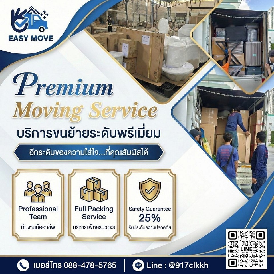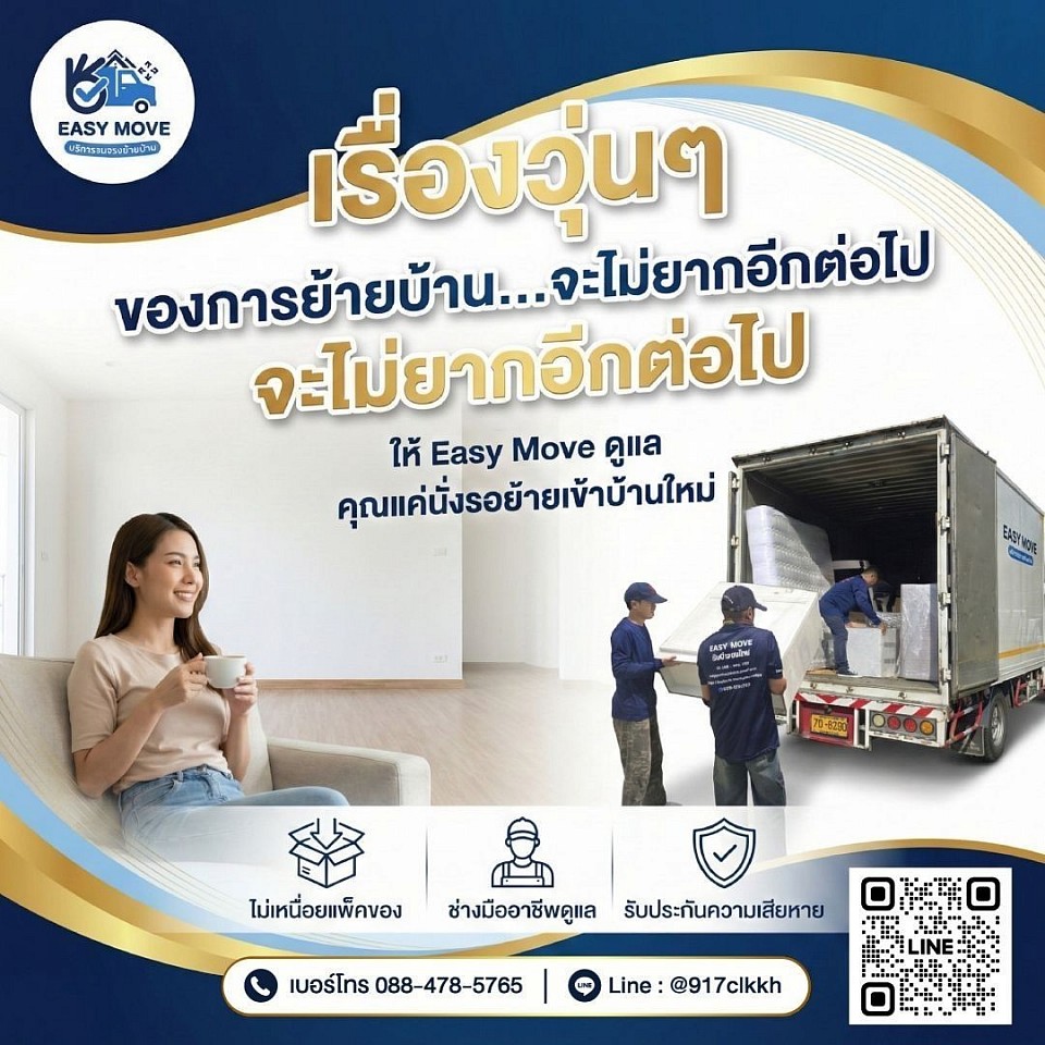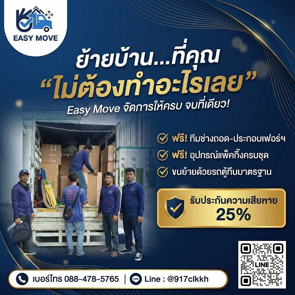บริษัท รับจ้างขนย้าย อีซี่ มูฟ จำกัด ผู้ให้บริการด้านการขนย้าย และขนส่งมืออาชีพ ไม่ว่าจะเป็น ขนย้ายบ้าน, ขนย้ายคอนโด ,ขนย้ายเฟอร์นิเจอร์ ,ขนย้ายสำนักงาน ,ขนย้ายโกดัง ,ขนย้ายตู้เซฟ ,ขนย้ายเครื่องจักร ,ขนย้ายเครื่องครัว ,ขนย้ายสินค้า ,ขนย้ายเครื่องใช้ไฟฟ้า ,ขนย้ายบูธ ,ขนย้ายต่างจังหวัด นอกจากนี้เรายังให้บริการถอด และ ติดตั้งเฟอร์นิเจอร์ทุกชนิด ด้วยช่างผู้ชำนาญงาน ที่มีประสบการณ์มากกว่า 15 ปี พร้อมทีมงานมืออาชีพไว้คอยแพ็คของให้ลูกค้าอย่างดีก่อนการขนส่ง เพื่อให้สินค้ามีความปลอดภัย ไม่แตกหัก หรือเสียหาย นอกจากนี้เรายังมีรถที่สะอาด และ มาตรฐาน ไว้คอยให้บริการทุกชนิด อาทิเช่น รถกระบะตู้ทึบ ,รถ 4 ล้อจัมโบ้ ,รถ 6 ล้อ และรถ 10 ล้อ ไว้คอยบริการลูกค้าตลอดเวลา
